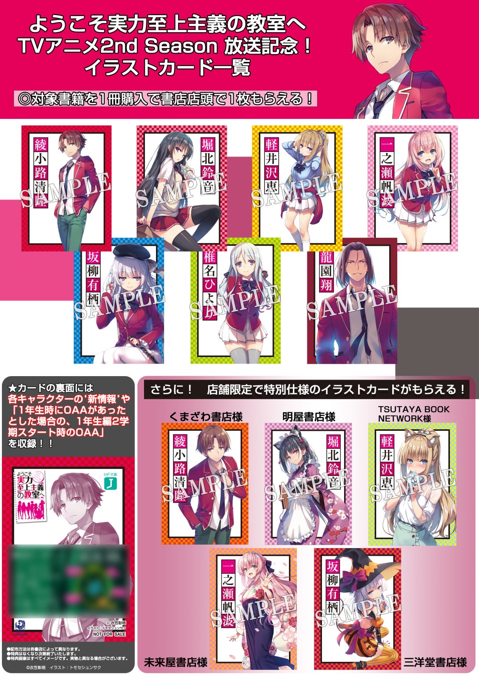 期間中、全国のフェア開催書店(約2,000店)で対象書籍を1冊購入すると、店頭で高度育成高校生徒データカードが1枚もらえます!