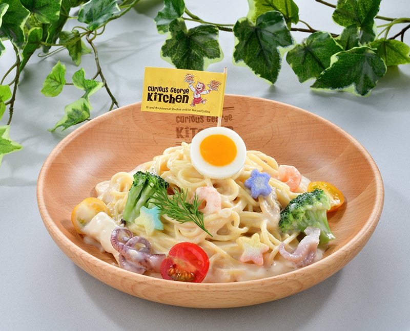 セカンドシーズンでは、夏らしくうきうきするような、おいしくて楽しい新メニューが登場いたします。カラフルなシロップとソーダをかけてご自身で仕上げる「『おっととと!』しゅわしゅわカラフルフルーツポンチ」をはじめ、海の仲間(シーフード)にお空のお星さまと、ジョージらしいユニークな組み合わせの「『星をかぞえて』お空のシーフードクリームパスタ」、そしてジョージの陶器製フェーブ(人形)がお持ち帰りいただける、待望のスペシャルメニュー「『ジョージと黄色い帽子のおじさんの出会い』フェーブ付きドリンクセット」が登場いたします。