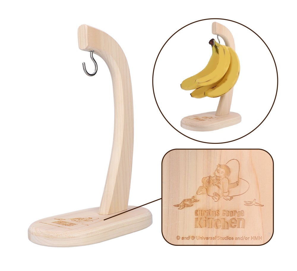 人気の店頭装飾アイテムがついに商品化!国産ひのきを使用した「バナナスタンド」、ユニセックスで着用できるスタイリッシュな色味の「Tシャツ」「エプロン」「キャップ」のほか、セカンドシーズン限定の書き下ろしアートを使用した「キーホルダー」などが発売になります。さらに、会期中にも新たな商品が追加発売の予定です。ボタンで両手をつなげてぶら下げられる、コックコートを着たジョージの「シェフジョージ ぶらぶらぬいぐるみ」、メニューブックがそのままお菓子になったような「メニューブックチョコラングドシャ」、いずれも詳細な発売日はCurious George Kitchen公式ツイッターにてお知らせいたします。