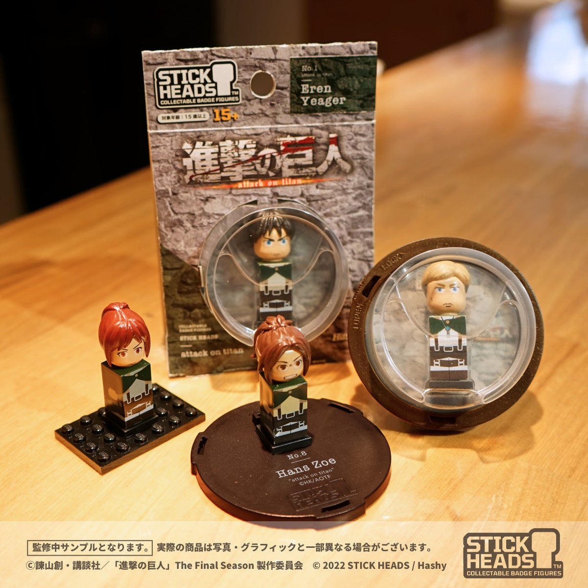 2022年3月に第1弾としてTVアニメ「進撃の巨人」を皮切りにリリース、極限までシンプルになったミニフィギュア・シリーズ。スティック(=棒)のボディを軸に、様々なキャラクターやヒーローを3D展開。「コレクタブル・フィギュア」だけでなく、ブリスターパック自体が「“3D”バッジ」として使える。また、バッジ(背面プレート部分)に付属のアタッチメントを取り付ければ、「ディスプレイ・スタンド」としてフィギュアを飾ることもOK!あなた好みのコレクションを完成させよう。