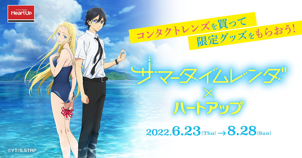 株式会社日本オプティカル(本社:愛知県名古屋市 代表取締役社長:前田貴志)は、2022年6月23日(木)より、コンタクトレンズ・メガネ専門店ハートアップと、4月よりTVアニメが放送中の「サマータイムレンダ」がコラボした「サマータイムレンダ×ハートアップキャンペーン」を、全国ハートアップ店舗で実施いたします。
