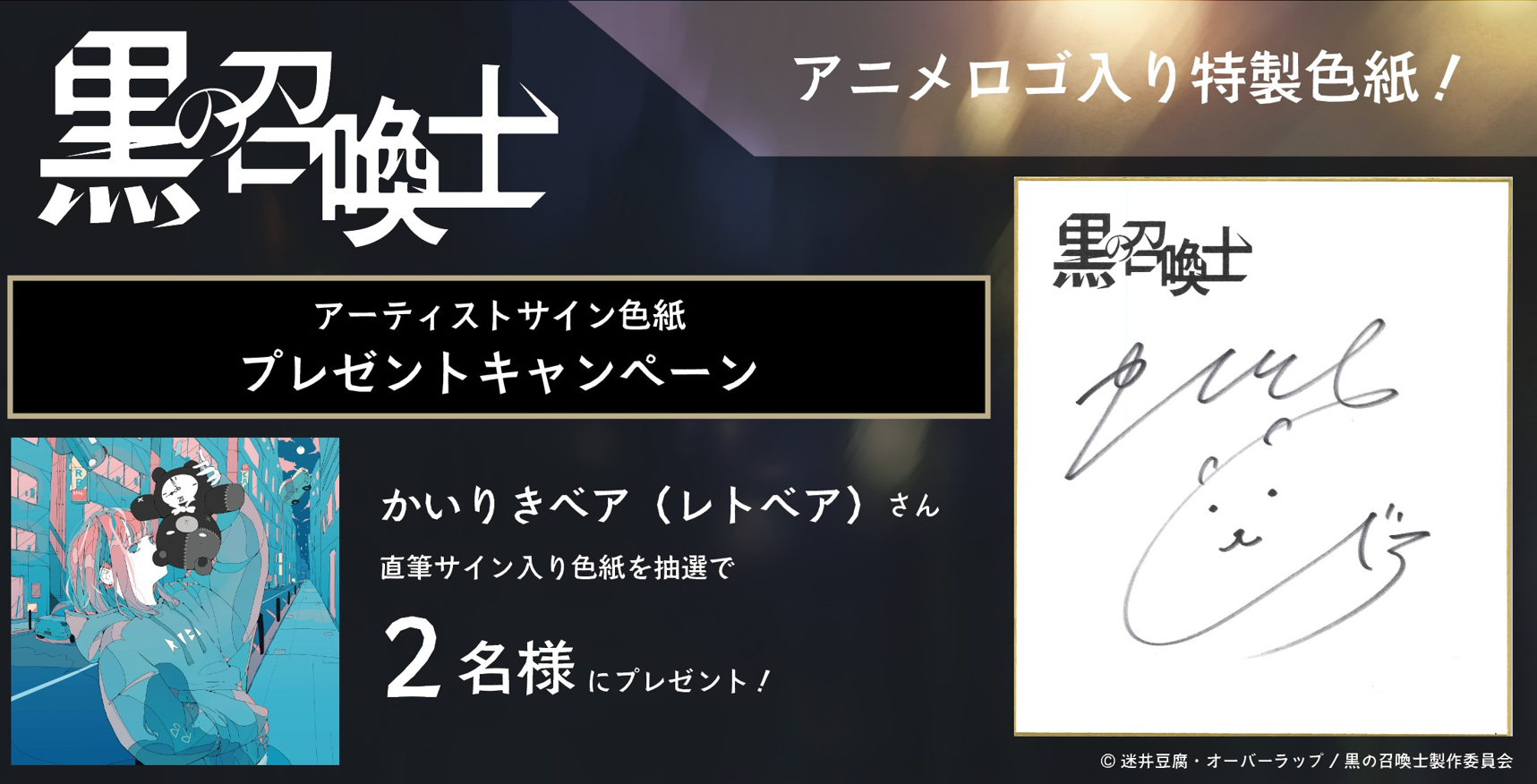 またアニメ公式Twitter(https://kuronoshokanshi.com/)では、かいりきベア(レトベア)の直筆サイン入り色紙プレゼントキャンペーンを開始!