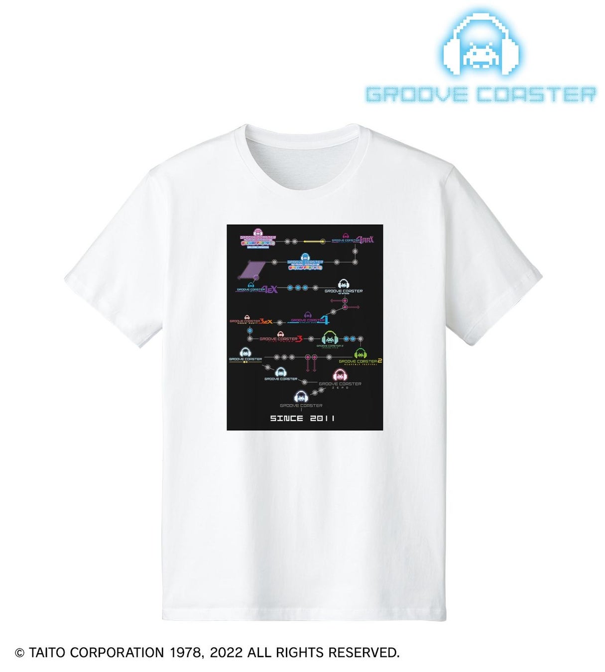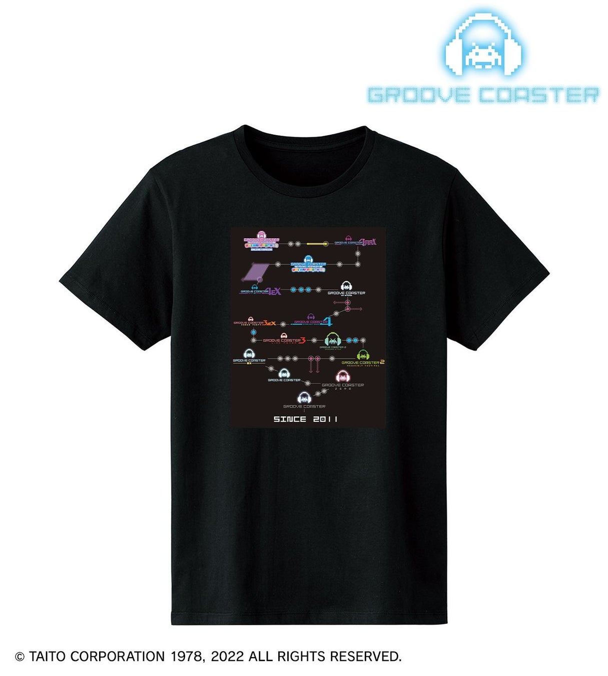 背面にグルーヴコースター10周年を記念したデザインを大きくレイアウトし、左胸にはグルーヴコースターのロゴマークをプリントしております。