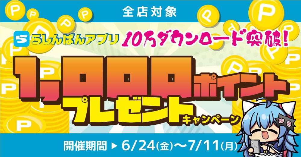 それを記念して、6月24日(金)から「らしんばんアプリ」にて1,000円分のポイントが抽選で100名様に当たるキャンペーンを実施いたします。