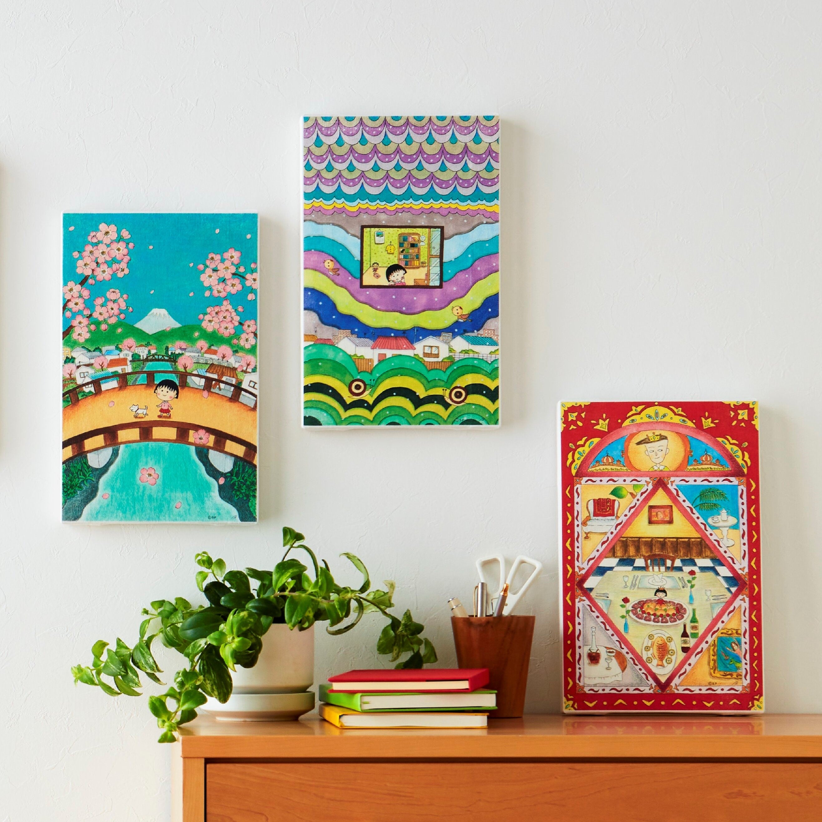 漫画連載当時のファンである大人世代に、懐かしく喜んでいただける商品として「ちびまる子ちゃん」をお届けしたいという想いにより、雑誌やコミックのサイズでしか見られなかったさくらももこさん手描きの、繊細で愛らしい「扉絵」を多く選び、実用性の高い雑貨アイテムを開発しました。