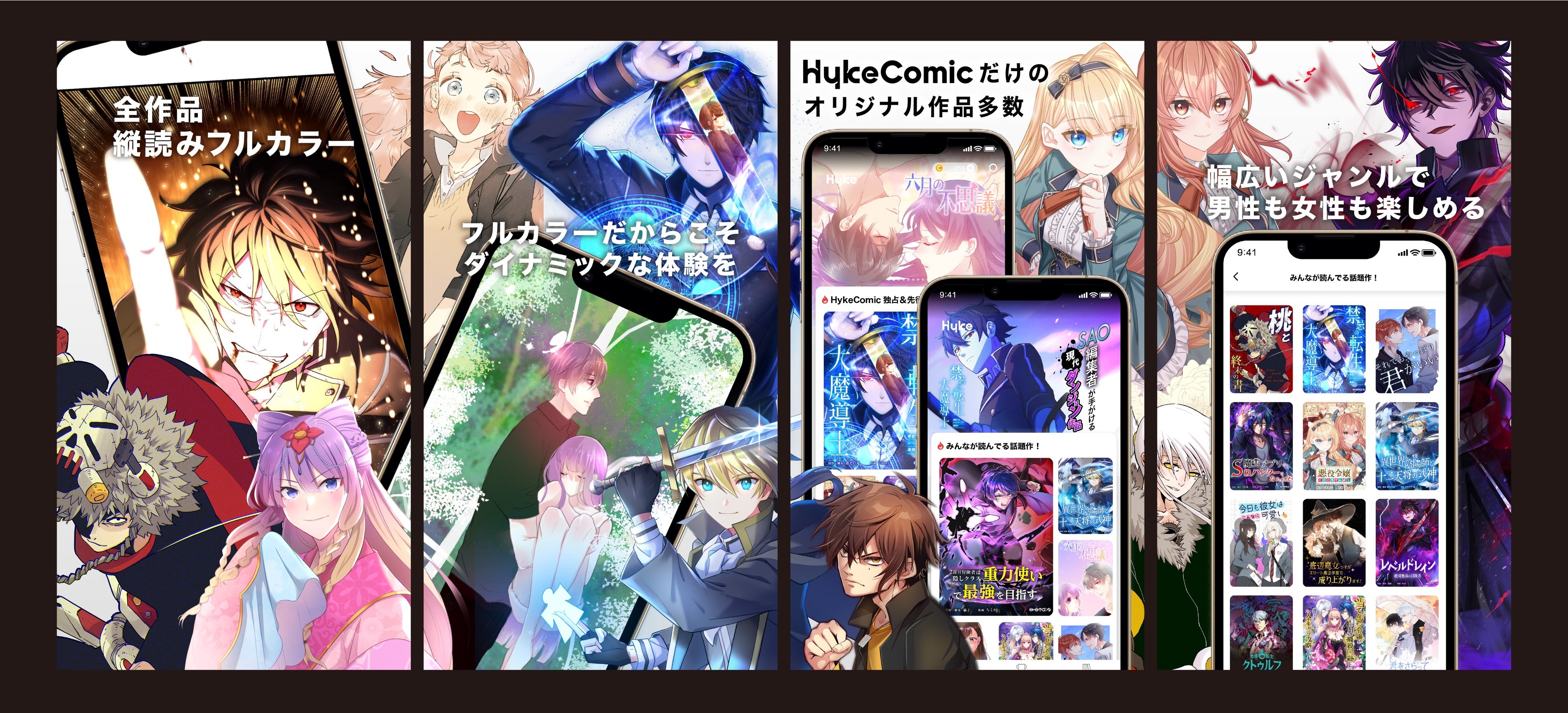 HykeComicは、自社制作のオリジナルおよび独占配信権を獲得した海外で人気の作品など、国内初リリース作品25タイトルを含む100を超えるタイトルをラインナップいたしました。ぜひご覧ください。