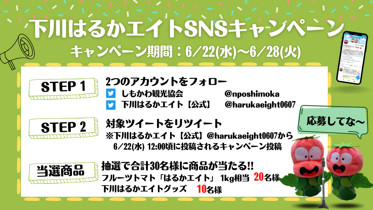 北海道下川町産のフルーツトマト「はるかエイト」1kg相当や「下川はるかエイト」オリジナルグッズなどが抽選で30名様に当たる「下川はるかエイトSNSキャンペーン」を実施します。