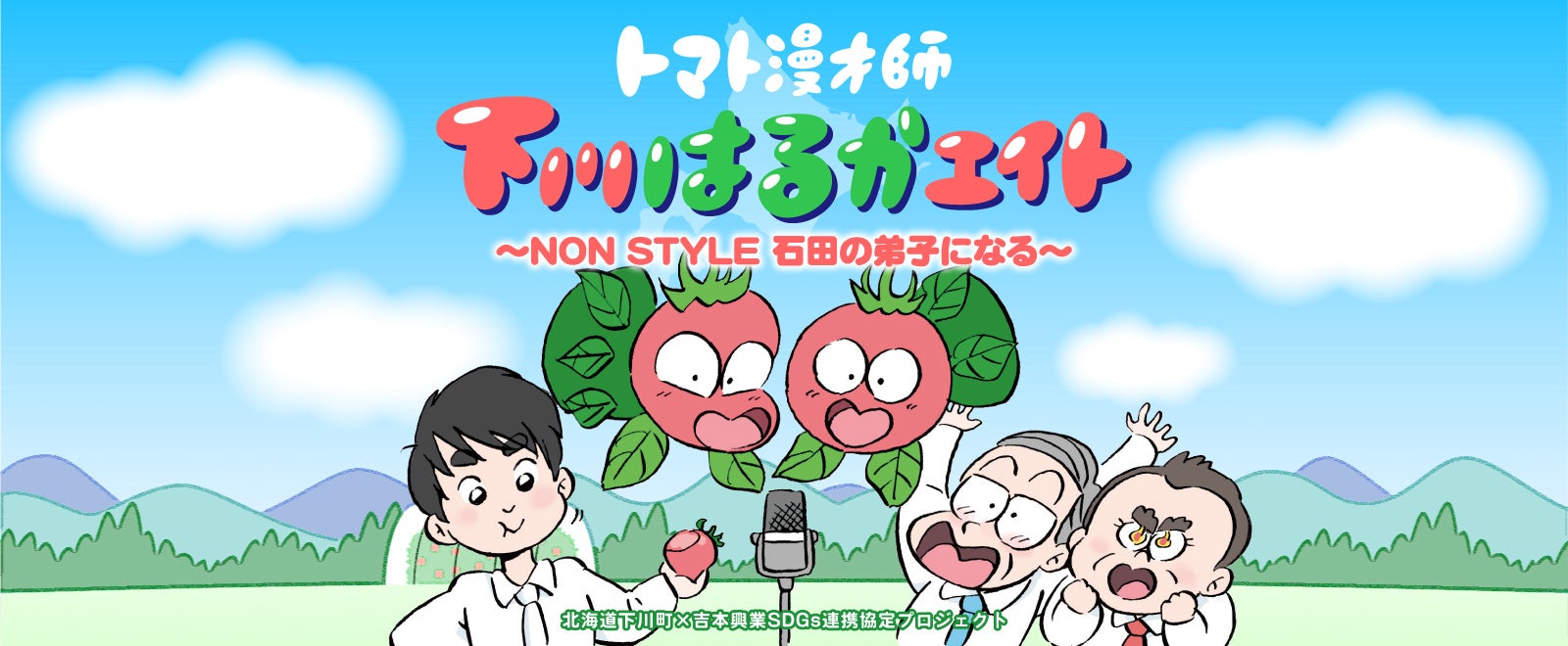 この度、NON STYLE石田明が原案を務める、トマト漫才師「下川はるかエイト」が下川町の職員とM-1グランプリを目指す異色の漫画が完成しました。6月22日(水)より、しもかわ観光協会公式Twitterや下川はるかエイト公式Instagramで配信します。漫画の連載を記念し、フルーツトマト「はるかエイト」等が当たるSNSキャンペーンも実施します。