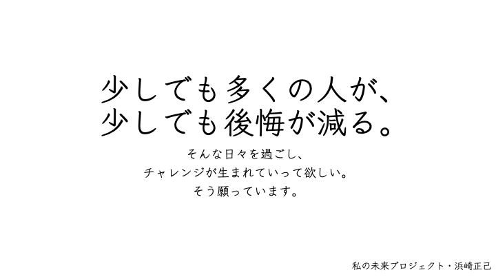 下記画像は、メディアインキュベートの浜崎による「未来プロジェクト」で実現したいことになります。あくまで参考です。むしろ参考にしていただかなくて結構です。