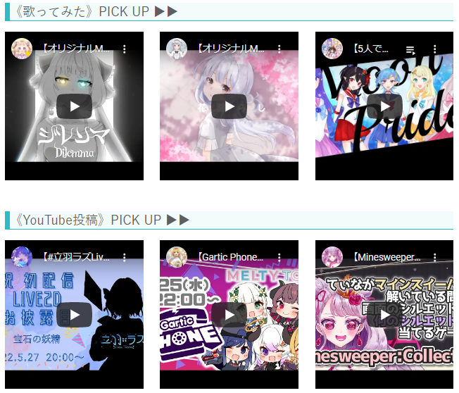 また、最新の「歌ってみた」「Youtube投稿」「ファンアート」をピックアップし掲載しています。