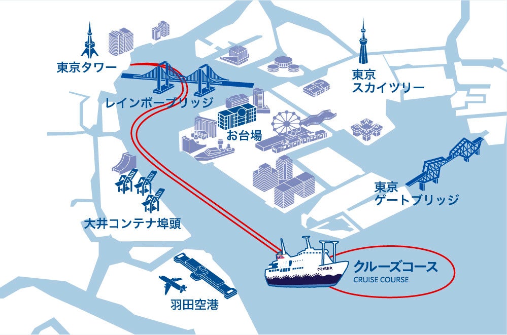 19:15竹芝客船ターミナル出航~東京湾内周遊~21:00竹芝客船ターミナル帰着