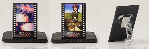 TVアニメ『進撃の巨人』の場面写真を映像フィルムに模した缶バッジをお付けします。スタンド仕様にもできるため机などに飾ってお楽しみいただくこともできます。