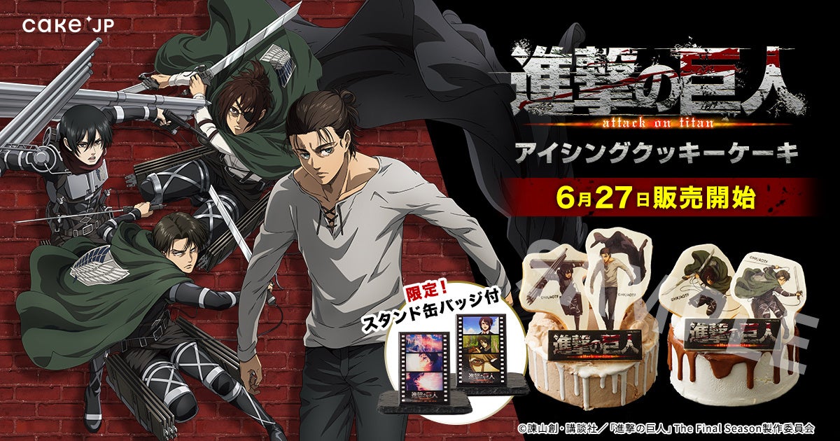 ケーキ・スイーツ専門通販サイト「Cake.jp(ケーキジェーピー)」を運営する株式会社Cake.jp(本社:東京都新宿区、代表取締役:高橋 優貴)は、TVアニメ『進撃の巨人』とのコラボ商品としてアイシングクッキーケーキを6月27日(月)より販売開始します。