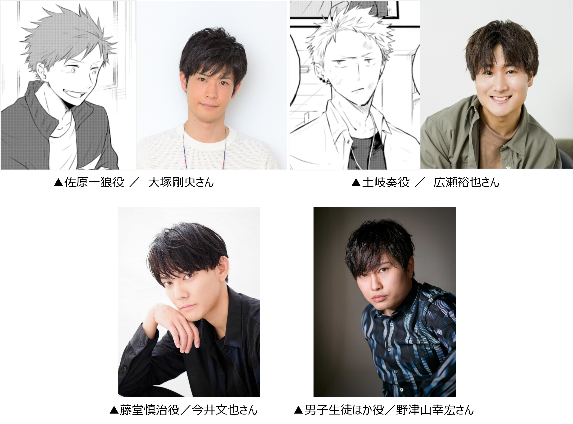 佐原一狼役を大塚剛央さん、土岐奏役を広瀬裕也さんがそれぞれ熱演。さらに土岐の先輩、藤堂慎治役を今井文也さん、男子生徒ほか役を野津山幸宏さんに演じていただき、豪華キャストでコミックス1巻より1話&3話をボイスコミック化いたしました!ぜひご注目ください♪