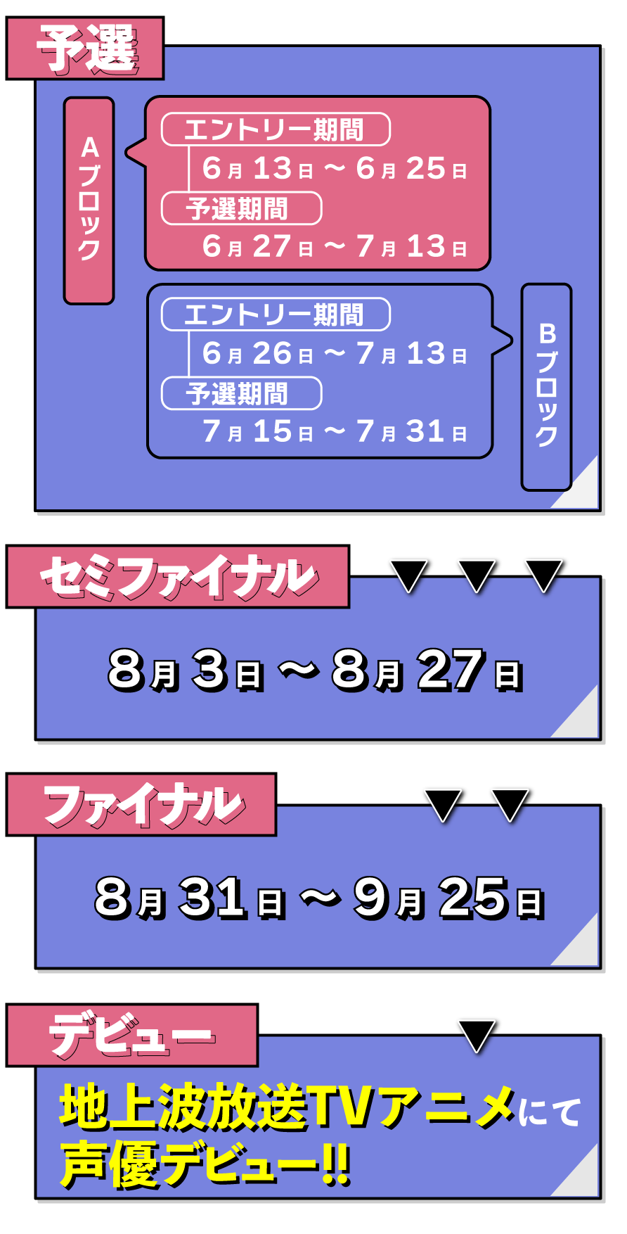 エントリー者数は、Aブロックの募集開始から1週間で1,500人を超え、非常に多くの反響をいただいている、今大注目の声優オーディションです。
