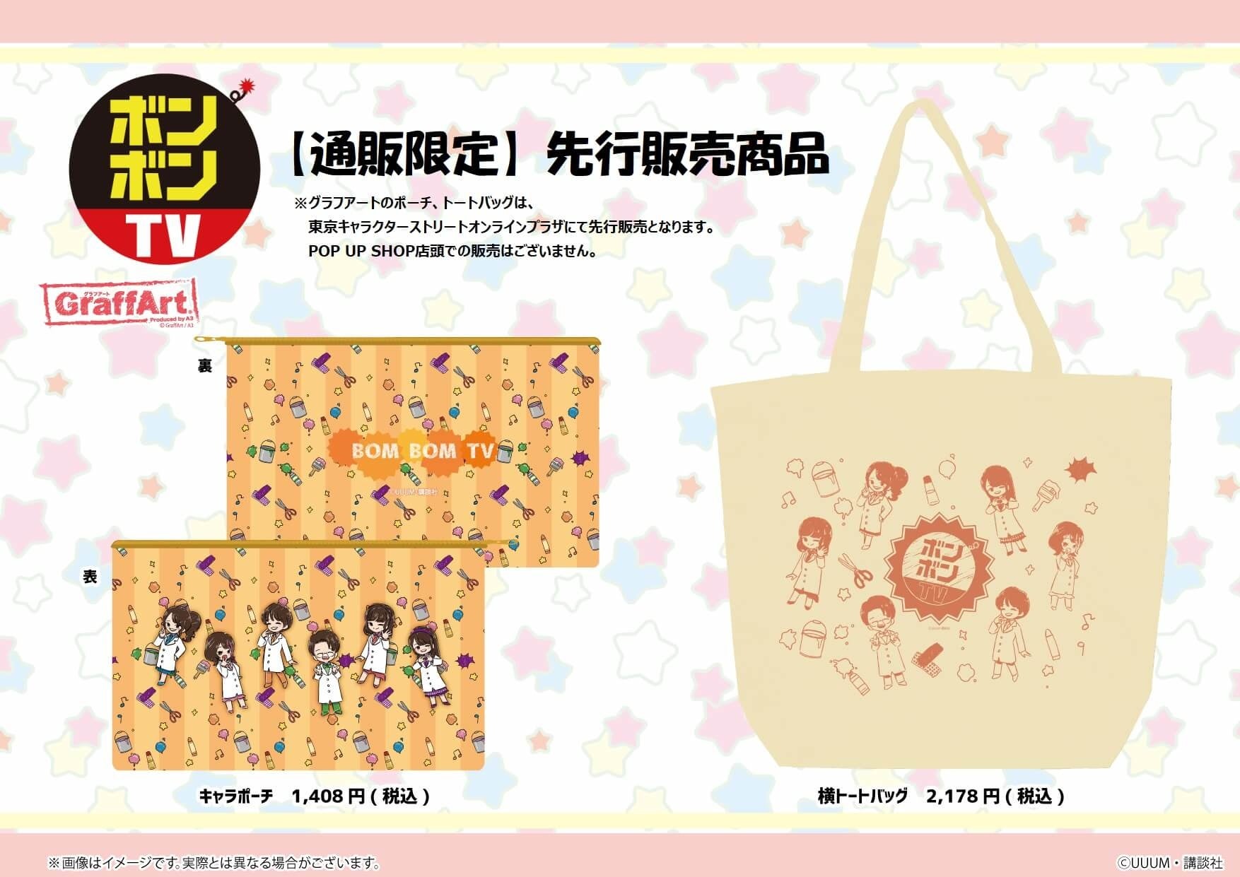 また、通販限定の先行アイテムとして、キャラポーチと横トートバッグも登場です!