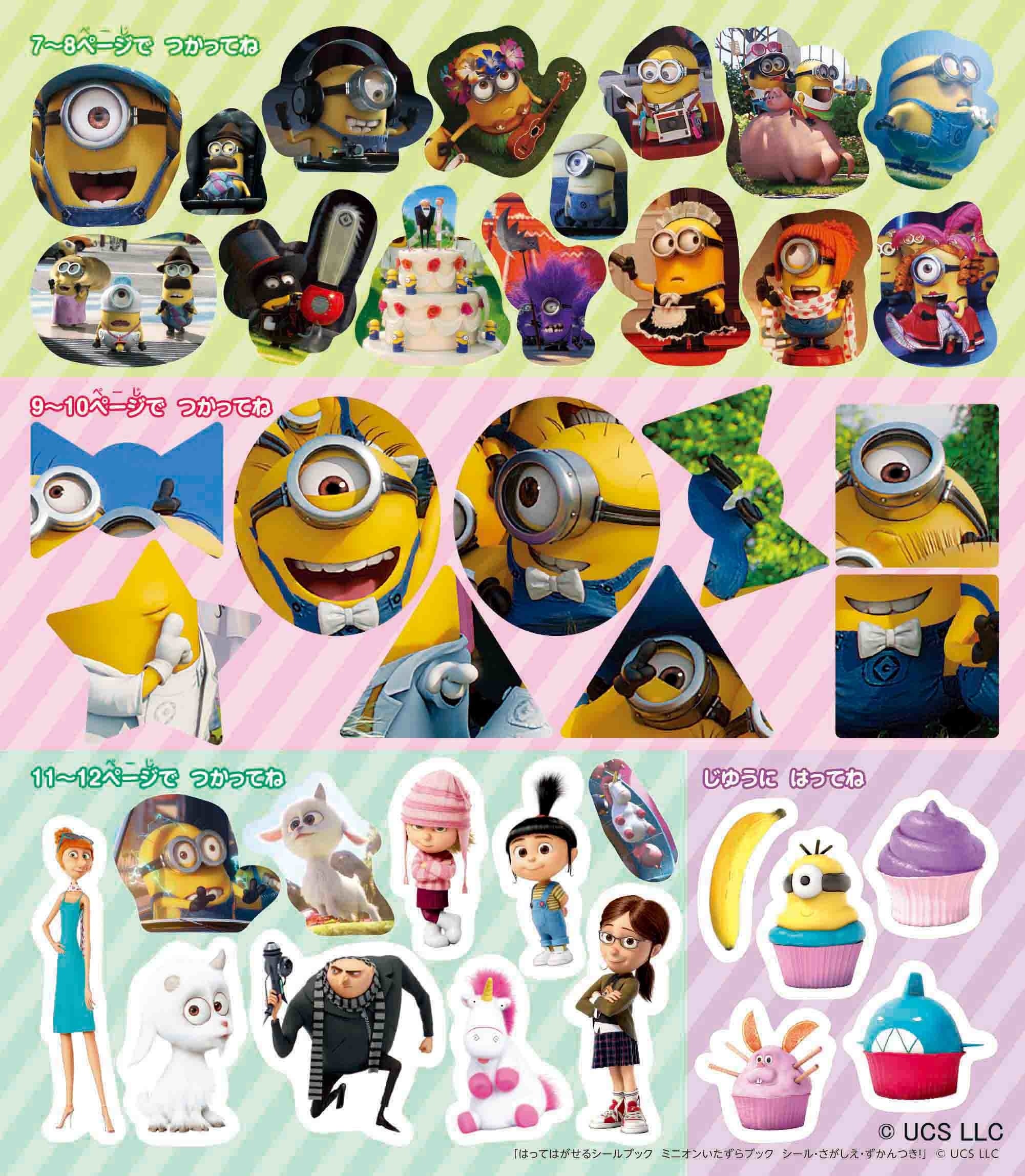 そのほかにも、ミニオンの歴史やミニオンコスチューム図鑑、行事を楽しむミニオンの紹介など、見て楽しいシールあそびのページがいっぱいです。