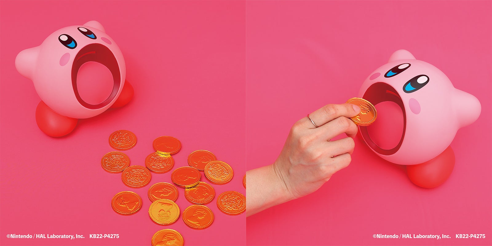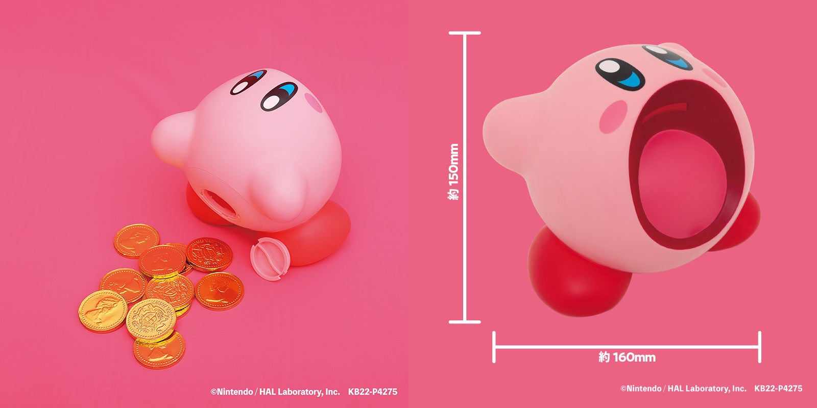 「すいこみ」を行うカービィをデザインした貯金箱です。お部屋の片隅で、いつでも「すいこみ」。存在感もバツグンです。