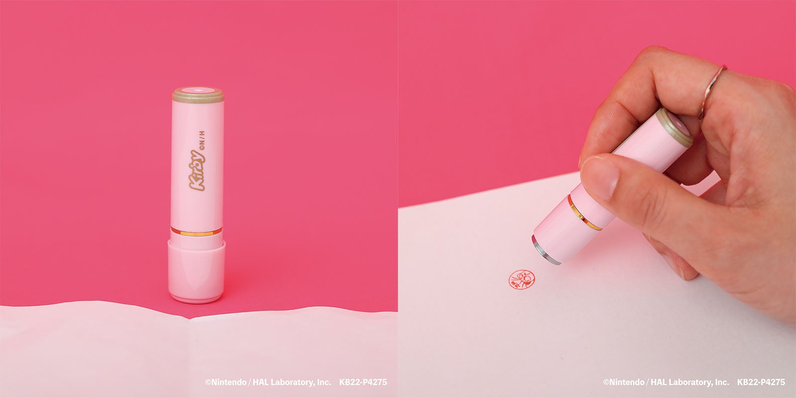 「すいこみ」を行うカービィをデザインした印鑑立てです。同時発売の「シヤチハタ ネーム9」はもちろん、お手持ちの印鑑を入れることができます。