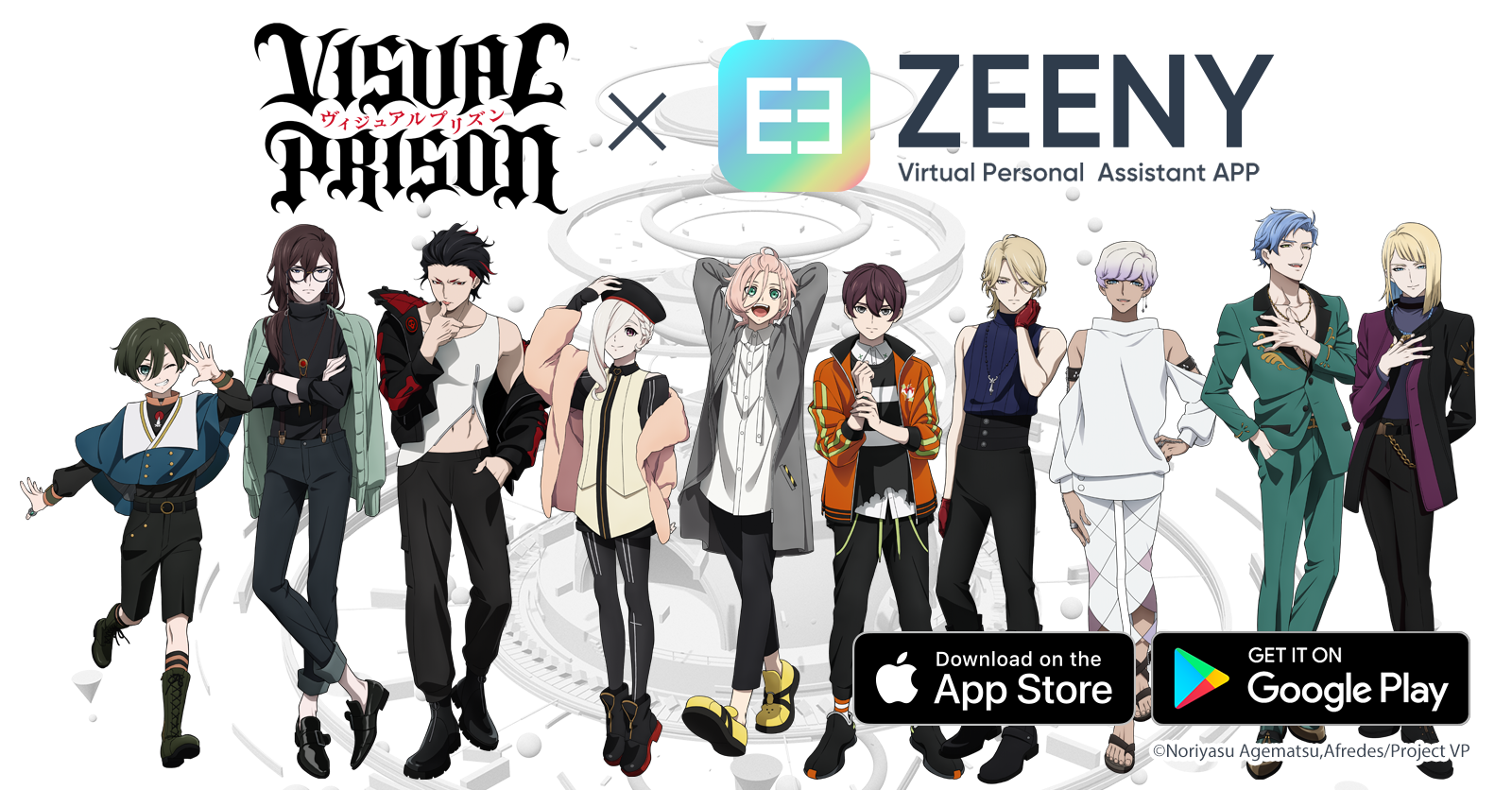 また、音声で時報、予定、スマートフォンのバッテリー残量などをお知らせしてくれるiOS/Androidアプリ『Zeeny アシスタント』内『Zeeny ボイスストア』で『ヴィジュアルプリズン』の各キャラクター録り下ろし音声も販売中。毎時の時報や、リモート作業で忘れがちなスケジュールも10分前になるとあなたの好きな声でお知らせしてくれます。
