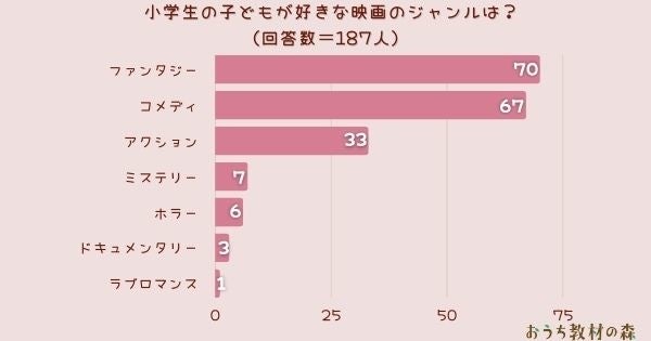 「小学生の子どもが好きな映画のジャンルは?」とアンケート調査した結果、1位は『ファンタジー』でした。