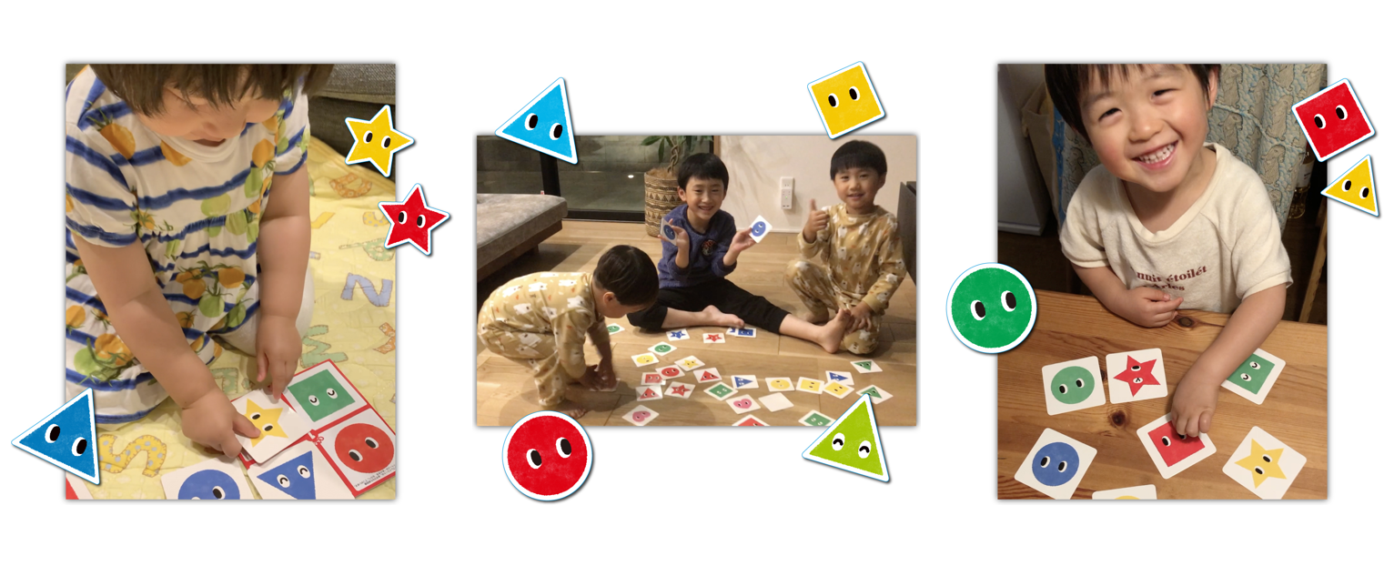 ババぬきや神経衰弱などの定番ゲームを、色と形だけであそべるようにアレンジしているので、小さなお子さんから親御さん、おじいちゃんおばあちゃんまで、みんなで楽しくあそぶことができます!