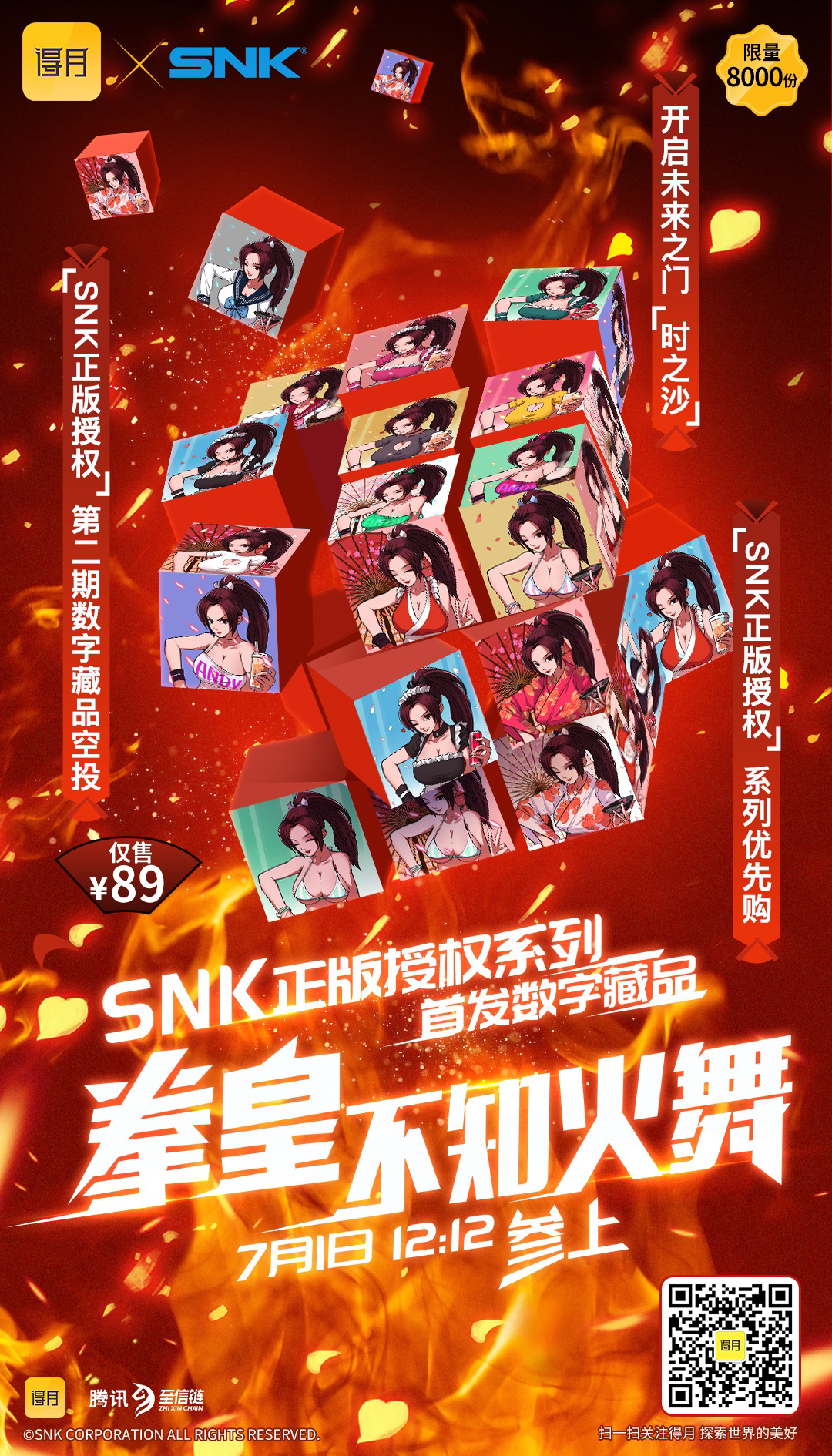 6月27日、株式会社Idragons Animationは株式会社SNKとライセンス契約し、中国版NFTプラットフォーム「得月」と共同で「SNK正規版授権」シリーズのデジタルコレクションを発行いたします。