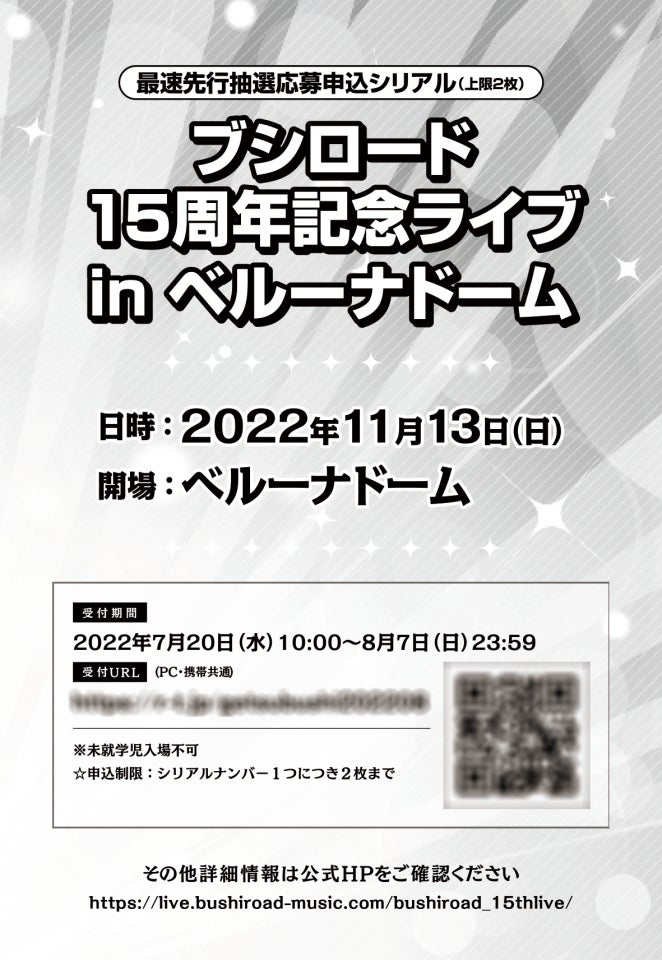 ▼「ブシロード15周年記念ライブ」最速先行抽選応募申込シリアル