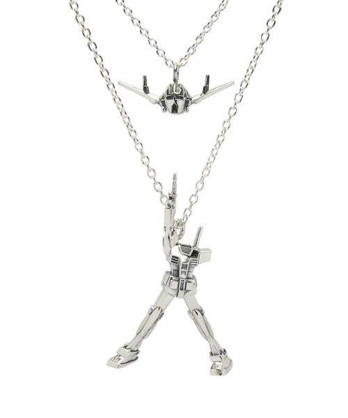 「ガンダム」と「ジオング」のそれぞれをシルバー925で作製。セットのネックレスは、身に着けると「ジオング」が「ガンダム」の上に位置する仕様。さらに、地球連邦軍、ジオン軍をモチーフとしたドッグタグネックレスは、ひとつひとつ刻印が施され、重厚感のあるミリタリーテイストに仕上がっている。