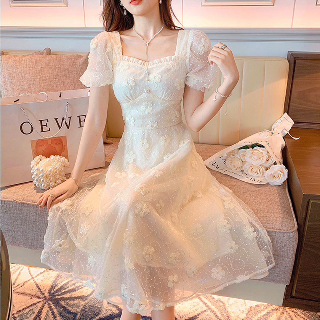 <Bouquet de Mariee / Back ribbon creamy chiffon dress【LONG】>¥12,900(税込)