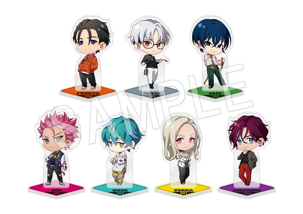 超人的シェアハウスストーリー『カリスマ』の POP UP SHOPが東京アニメセンターを含む全国3店舗にて順次開催決定!個性的な7人の描き起こしミニキャライラストを使用した「トレーディングアクリルスタンド」や、「アクリルクロック」など新作アイテムが多数登場いたします!