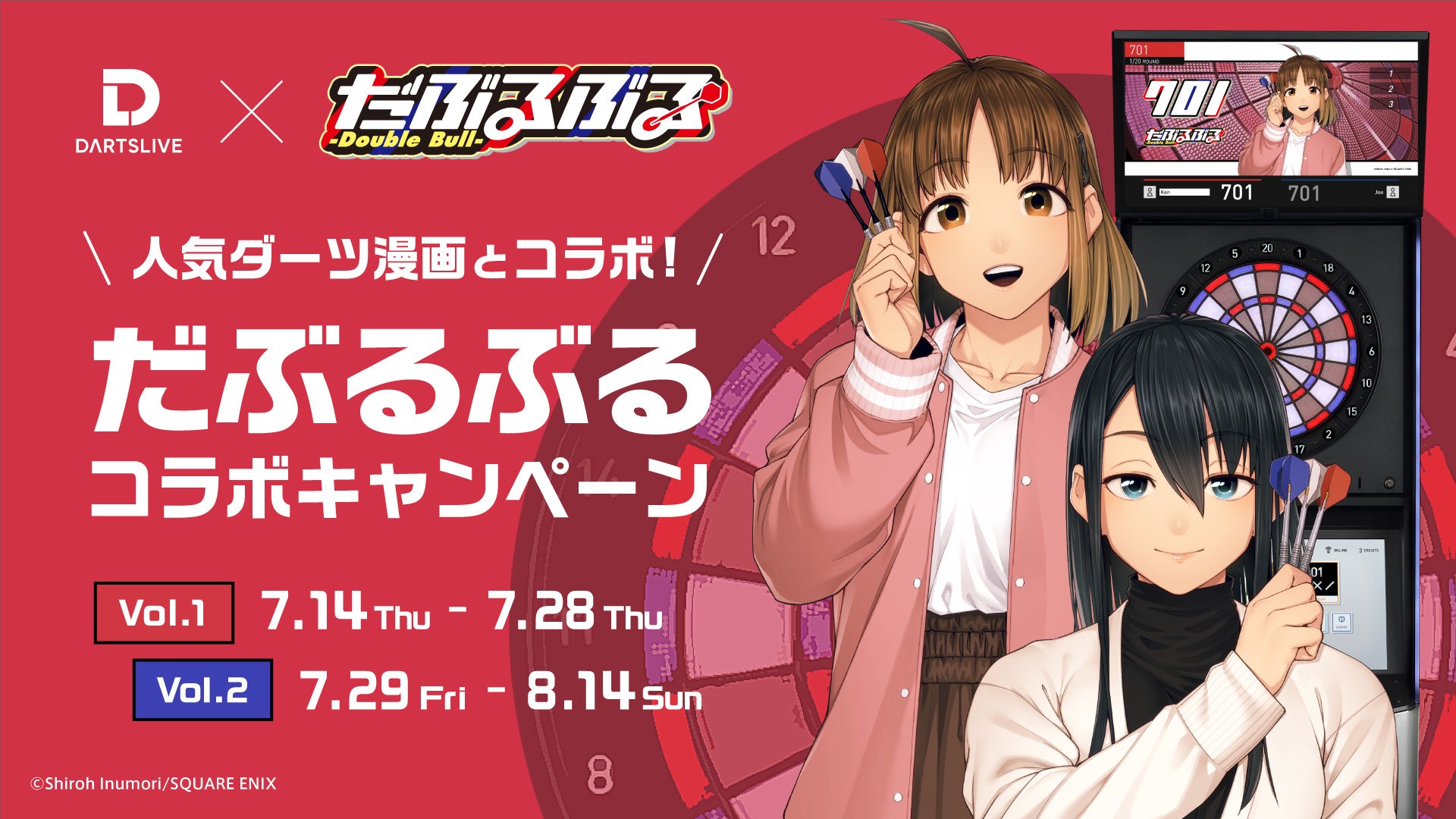 セガサミーグループの株式会社ダーツライブ(本社:東京都品川区、代表取締役社長:桝本 菊夫)は、2022年7月14日(木)より株式会社スクウェア・エニックス(本社:東京都新宿区、代表取締役社長:松田 洋祐)が発行する漫画雑誌「ヤングガンガン」で連載中のダーツ漫画『だぶるぶる-Double Bull-』とコラボレーションしたキャンペーンを実施します。