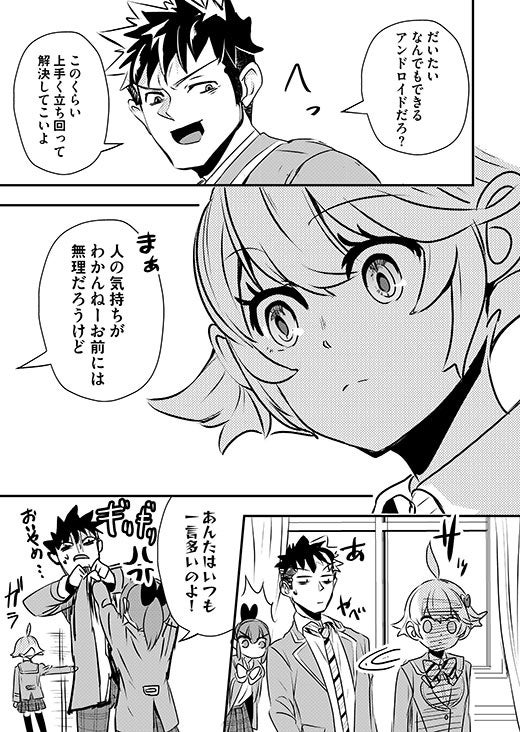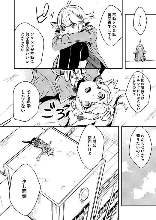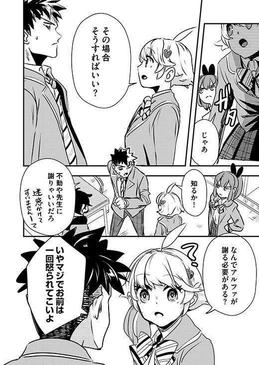 周囲に迷惑をかけつつクラスメイトと共に充実した学園ライフを送っていたアルファだが、早くも退学の危機!?事態を打開すべく人間の思考を理解しようと考えた末、アルファの取った行動は…?