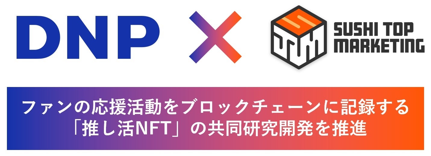 今回の業務提携によって、コンテンツ事業者とファンをつなぐ新サービスの創出に向けた共同研究を推進します。DNPの、リアルとバーチャル/デジタルとアナログ/モノづくりとサービスのハイブリッドな強みと、SUSHI TOP MARKETINGの、NFT配布やトークングラフマーケティングのナレッジを掛け合わせて、アニメ・マンガ・ゲーム等の知的財産を主な対象としたビジネスの創出を目指します。
