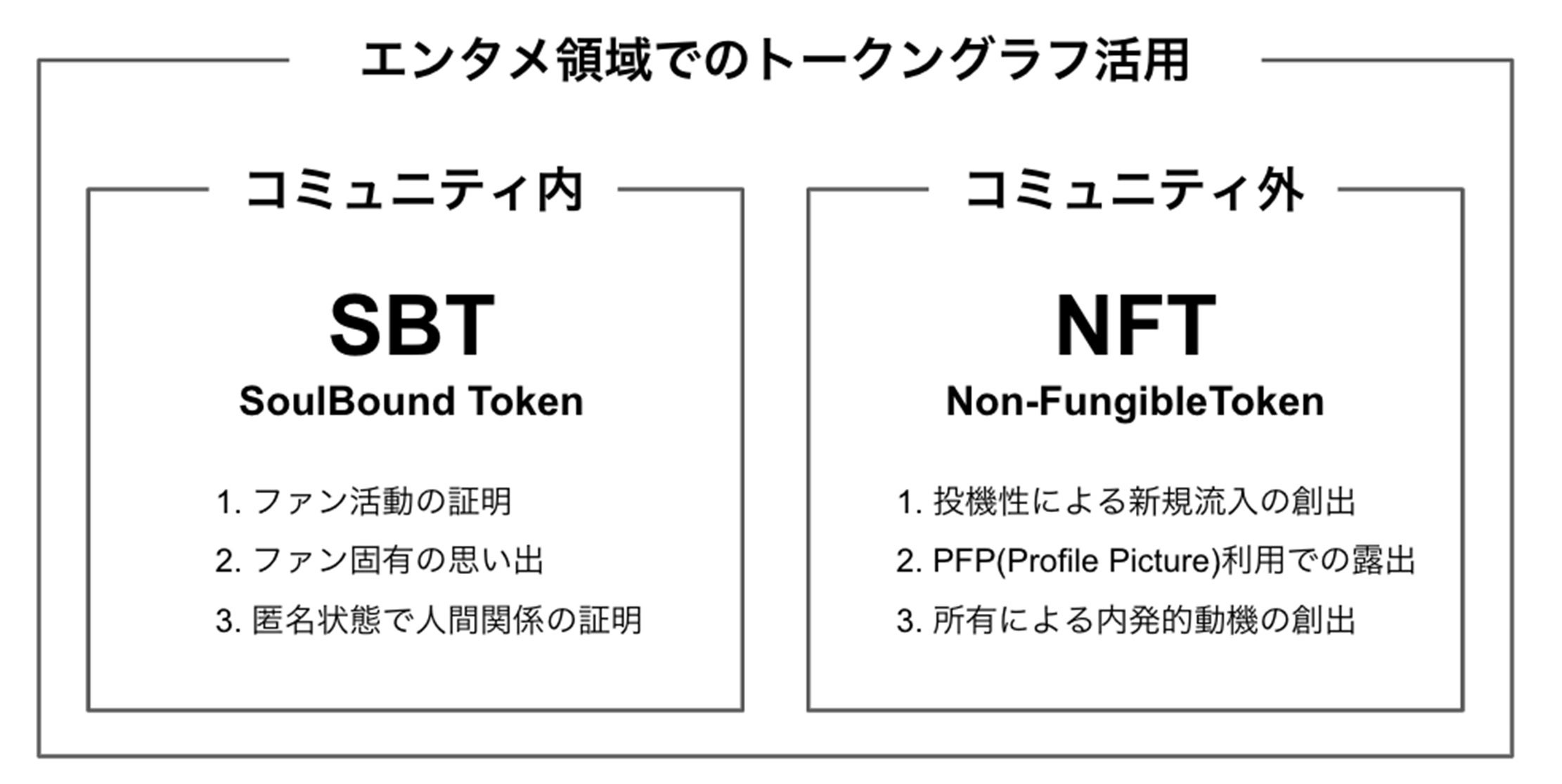 Ethereumの共同創設者ヴィタリック・ブテリン氏が発表した譲渡不可なNFT。「ソウルバウンド=魂に縛られた」という言葉の通り、NFT取得者は他者に譲渡できないことを前提としている。これまでNFTは自由に売買できることが1つの利点とされてきたが、例えば学歴や資格などの個人に紐づく情報をNFTとして発行し、来るデジタル社会に於ける信用証明の手段として用いることが考えられている。
