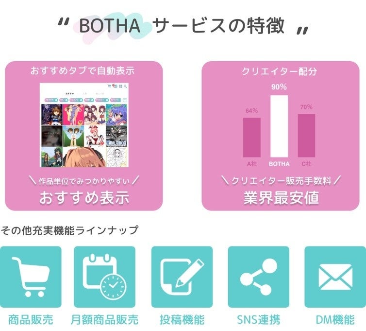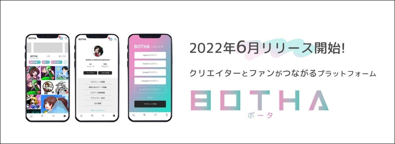「BOTHA(ボータ)を通じて、一人一人の個性やクリエイティブ、想いを込めた作品を世に生み出してもらいたい」そして、「その作品と出会うことを待っている未来のファンたちと人生を変えるきっかけとなるような出会いの場になりたい」というのが、私たちがこのBOTHA(ボータ)開発に懸けた想いです。また、かつては非現実的であった“表現の世界でお金を稼ぐ”といった夢を持つ人のハブとなる主要マネタイズプラットフォームとなれるよう、今後のサービス拡大に伴い、ローンチ後の改善も行っていく予定です。(https://bo-tha.com/signup/)