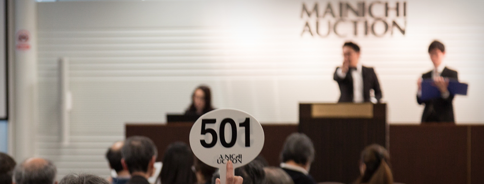 毎日オークションは1973年創業。1989年に美術品に特化した公開型オークション事業をスタート以来、アート作品をはじめ、西洋装飾美術や日本陶芸・古美術、ジュエリー・時計などを取り扱っています。年間30回以上のオークション開催、年間出品数は3万ロット、シェア率36.05%(※)に及ぶ国内最大級のオークションハウスです。