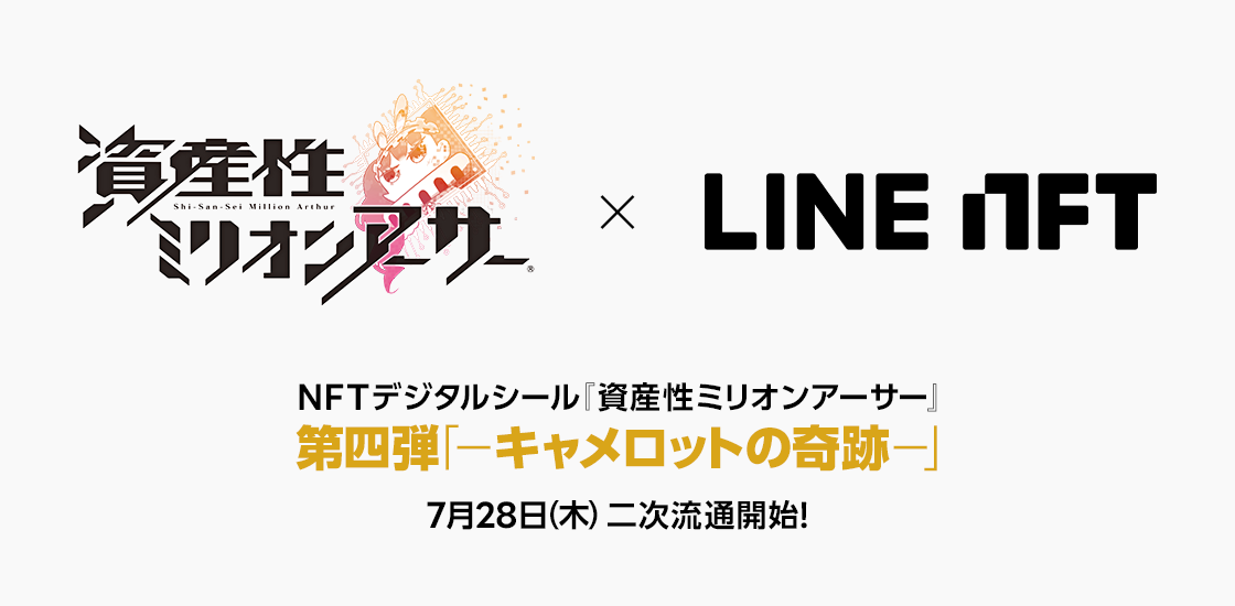 LINEの暗号資産事業およびブロックチェーン関連事業を展開するLINE Xenesis株式会社(所在地:東京都品川区、代表取締役社長CEO:林 仁奎、以下「LINE Xenesis」)は、NFT総合マーケットプレイス「LINE NFT」において、7月28日(木)より、スクウェア・エニックスのNFTデジタルシール『資産性ミリオンアーサー』第四弾となる「- キャメロットの奇跡 -」の二次流通を開始しますのでお知らせします。