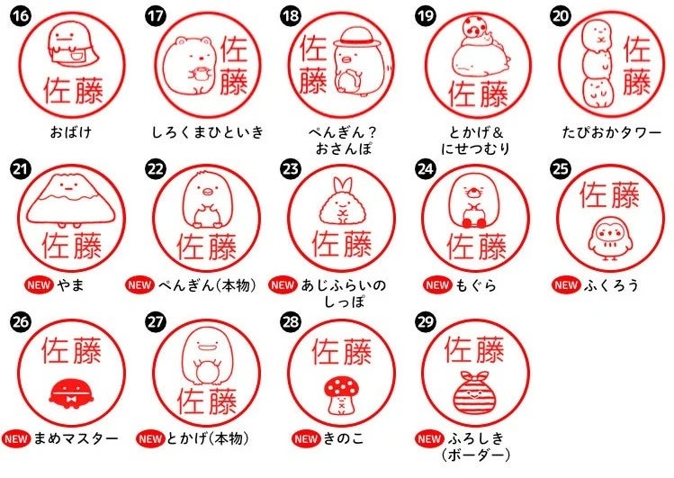 さむがりの“しろくま”や、自信がない“ぺんぎん?”、食べ残し(?!)の“とんかつ”、はずかしがりやの“ねこ”、正体をかくしている“とかげ”など、ちょっぴりネガティブだけど個性的な“すみっコ”たちがポンと押すたびに癒してくれる「すみっコぐらし はんこコレクション」。全国のすみっコぐらしショップ(4店舗)とリラックマストア(16店舗)にて実物がごらんいただけます。