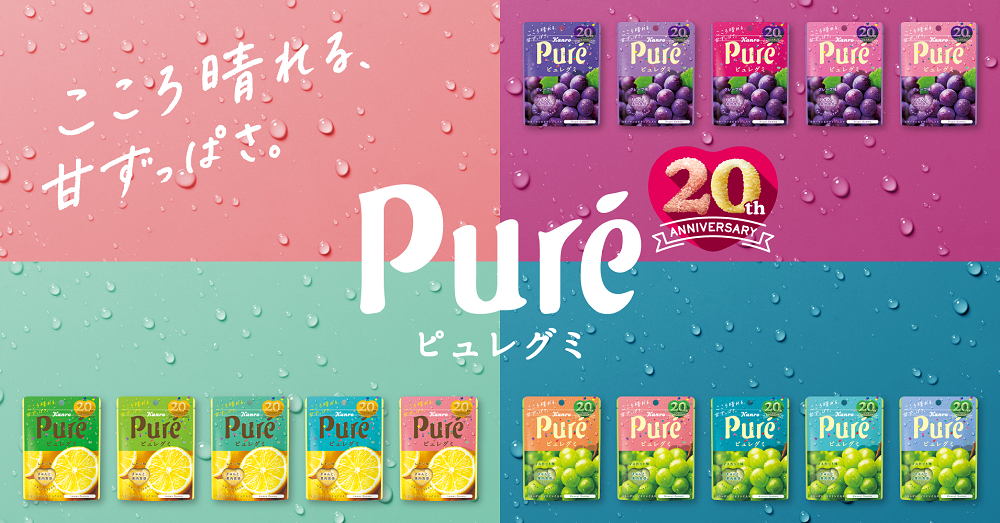 ピュレグミは、“すっぱいパウダー”によって際立つフルーツのフレッシュな甘ずっぱさと、心地よい果肉食感が特徴で、幅広いシーンでご愛顧をいただいています。2002年の発売以来、幅広い世代の方からご支持をいただき、今年で20周年を迎えました。