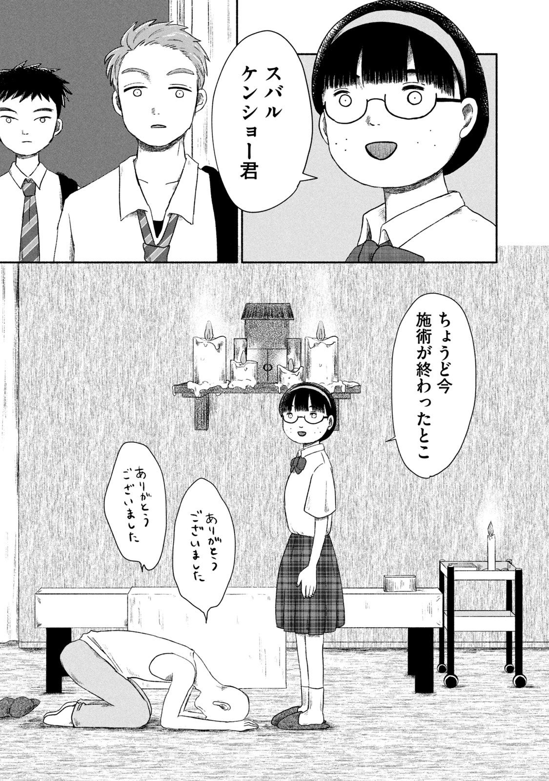 るなは「宗教の人」としてクラスでいじめられるが、唯一の理解者であるスバルとは良い友人関係を築いている。