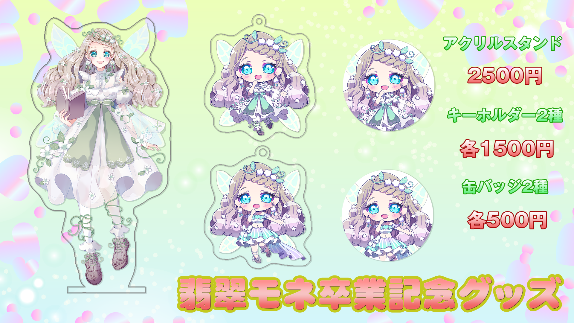 メタバースで活躍するタレント育成をDX化する株式会社ファンスター(東京都渋谷区)は人気バーチャルタレント「翡翠モネ」が2022年7月末日を以て卒業するにあたり、卒業記念限定グッズを本日、7月14日(木)18時よりBOOTHにて受注受付開始することをお知らせ致します。