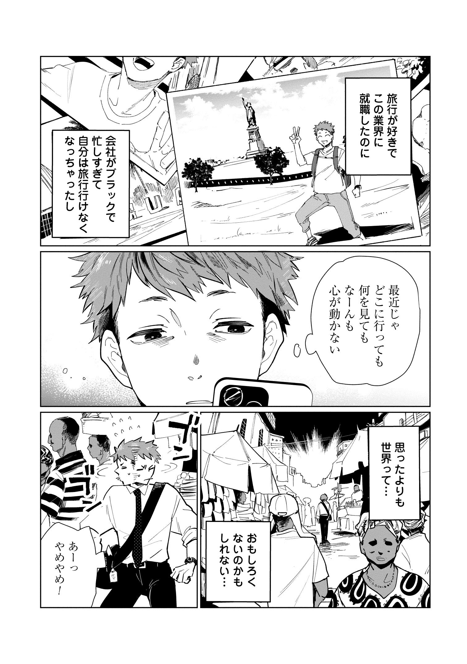 仕事先で訪れるマンネリ化してしまった海外の景色が、一人の奇妙な旅人サトウケンジと出会うことによって一変する――。