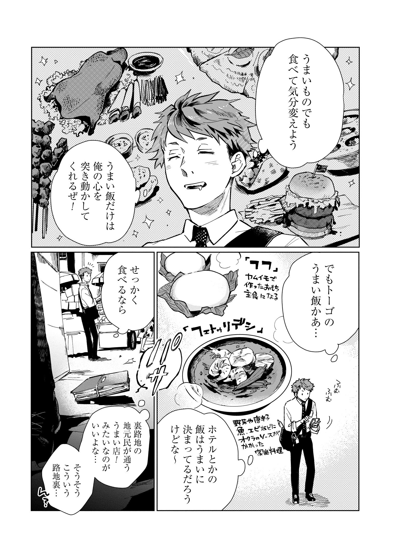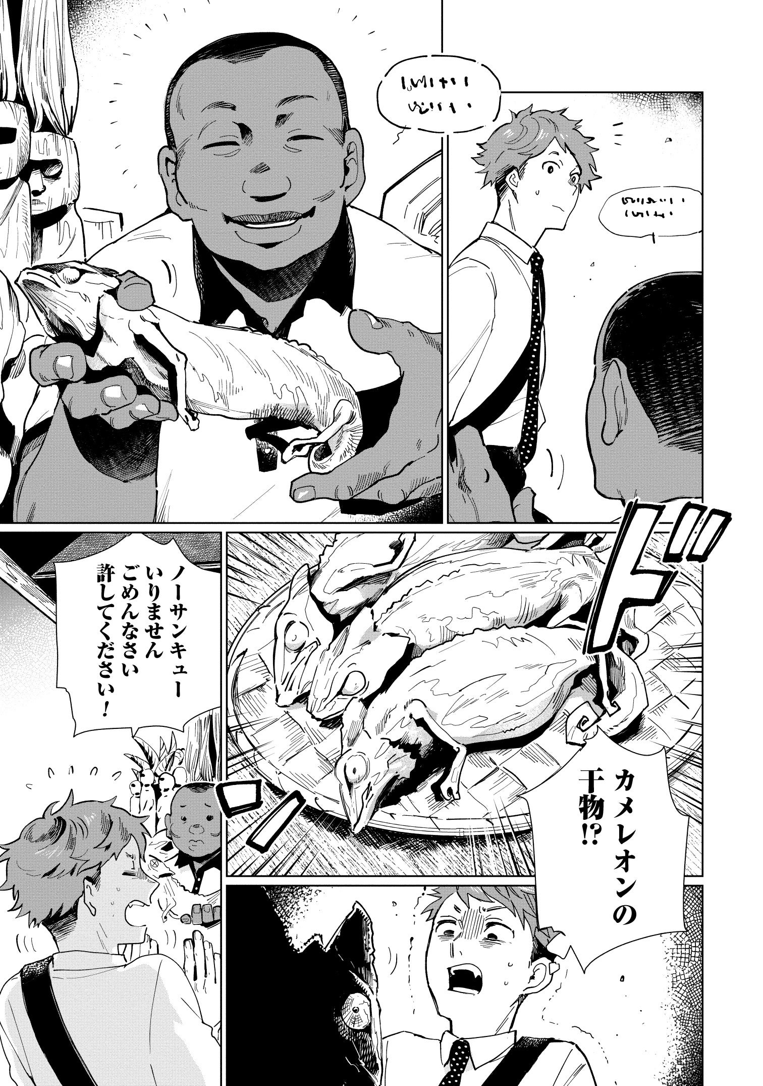 第一話は、旅行会社でツアーコンダクターをしている青年・田尾行人が、仕事で訪れた西アフリカのトーゴで呪術師の市場に迷い込んでしまう。そこで謎の男サトウケンジに出会い、彼の案内で世界の奇妙な光景を目にしていくことになります。