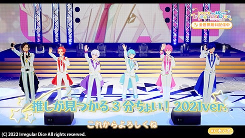 カラオケルームの大画面・大音量で多彩な映像コンテンツが楽しめるJOYSOUNDの「みるハコ」に、歌ってみた動画やオリジナルソング投稿、ライブなどを中心に活動中の6人組実力派歌い手グループ・いれいすのライブ映像が登場!今年5月に開催した1st 3D LIVE『Irregular Dive in バーチャル』の模様を収めたダイジェスト映像に、ここでしか観られない各メンバーからのコメント映像を加え、7月20日(水)から8月19日(金)までの期間限定で配信。対象機種「JOYSOUND MAX GO」を導入の全国のカラオケルームにて無料(別途室料)でお楽しみいただけます。