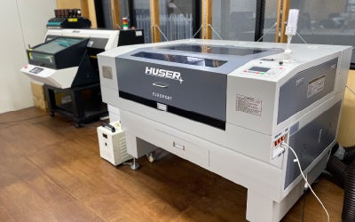 「HUSER」はA1サイズ(900×600mm)の広い加工範囲と90Wのレーザー出力による高い生産能力を持ちながら、198万円(税別)という低価格を実現したレーザー加工機です。