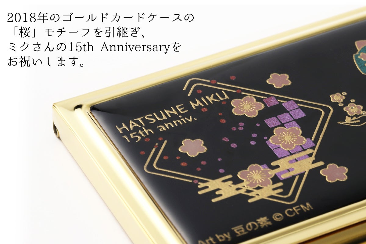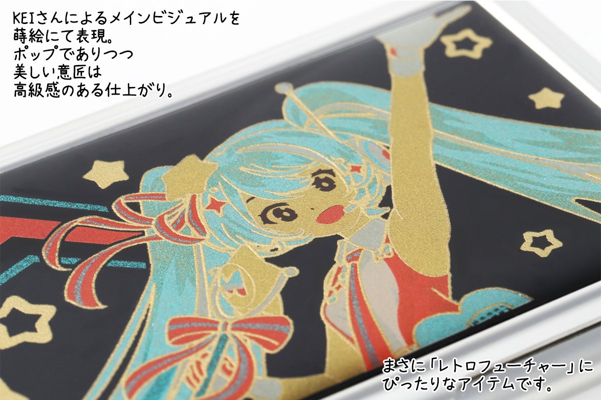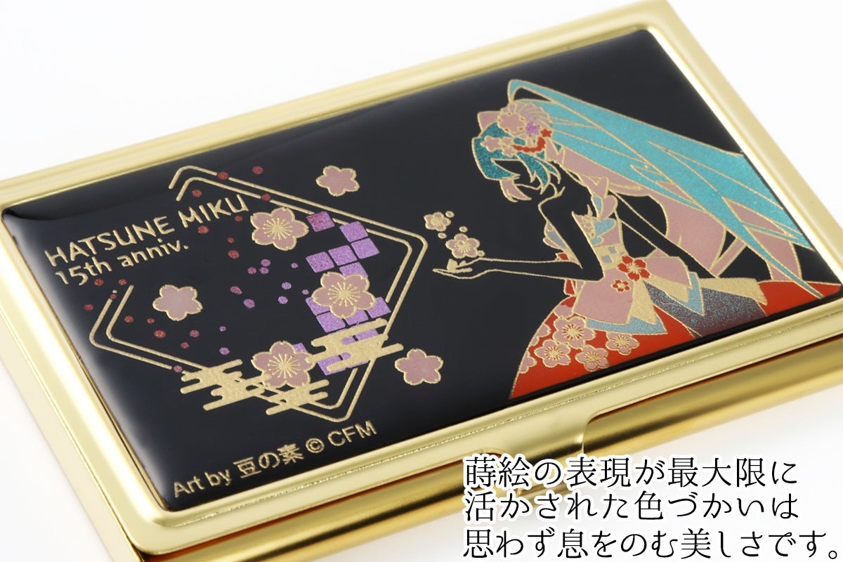 それにふさわしいアイテムとして、2018年のマジカルミライ初出展時に限定販売で人気を博し、毎年多くの再販希望をいただいていた『蒔絵カードケース』を新デザインで販売いたします。