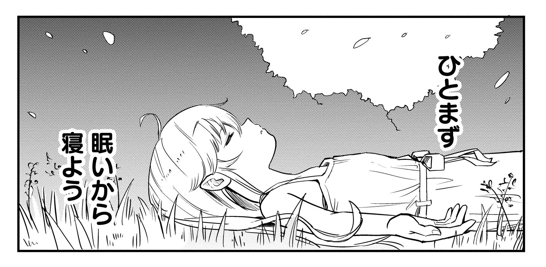 しかし、それすら些細な事だと言わんばかりに、草をベッド代わりに寝始める。