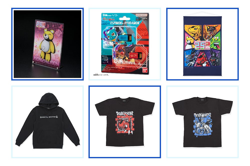 本ミュージアムにて先行販売となる「Dimカード-V3- エスピモン&リュウダモン」やデジタルモンスター25周年のアパレルグッズなど、多数ご用意しています。