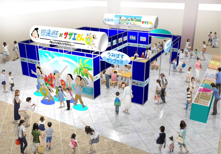 会場では、海やサザエさんにまつわる落語や、海のポスター作成や3Dプリンターを使ったワークショップ、サンゴ礁の海を再現した水槽やバーチャルキャラクターと対話しながらの海洋環境教育などのプログラムを実施いたします。また、オリジナル「サザエさん」グッズの販売や、サザエさん(着ぐるみ)と写真が撮れるフォトコーナーを設置します。本取り組みを通して、全国の幅広い世代に、海からの恩恵や、海を取り巻く課題について周知啓発をしていきます。